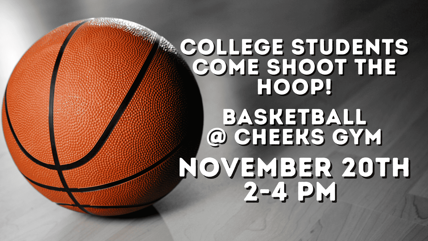 College Students come shoot the hoop, Sunday, November 20th from 2PM-4PM at Cheek’s Gym. Contact Pastor James for more info.