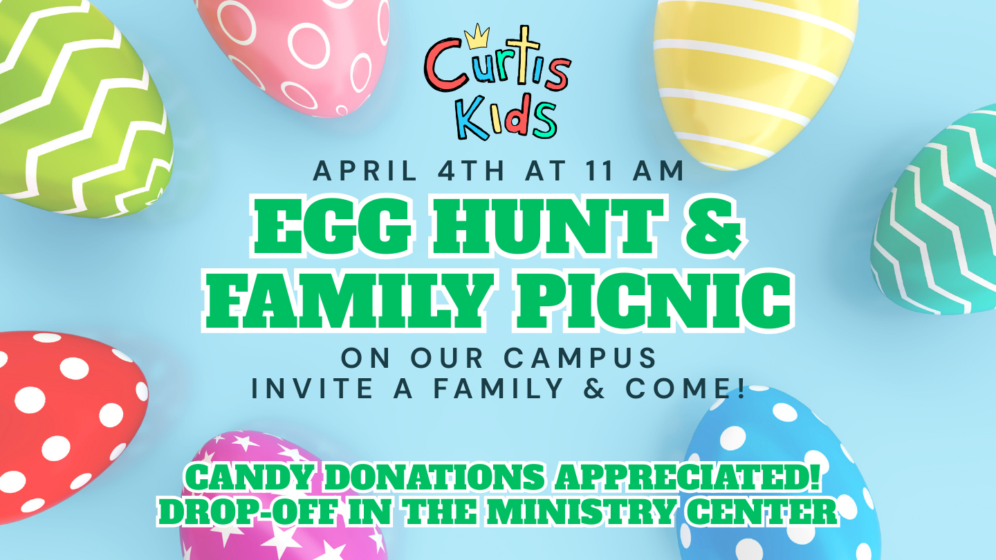 This year’s Egg Hunt and Family Picnic will be held on our campus Saturday, April 4th starting at 11 AM. If you would like to help with this fun event, please contact Pastor Ben or Susan Schaeffer. We will also be collecting candy to stuff our eggs, and those donations can be dropped off in the Ministry Center.
