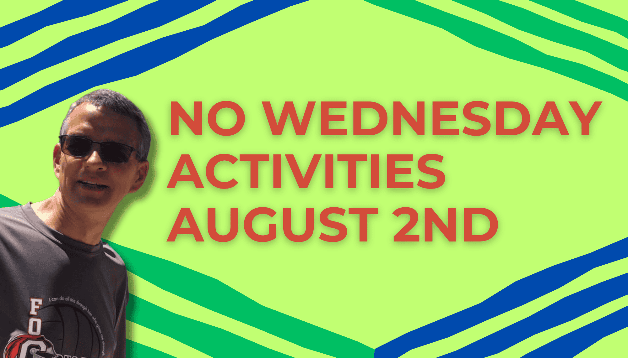 Just a reminder – we will not have any Wednesday night activities on August 2nd. We will return to our regular activities on August 9th.