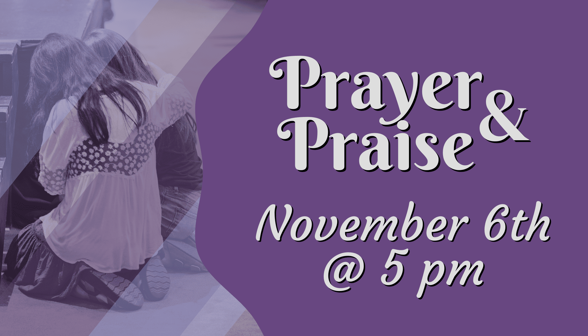 Our monthly Prayer and Praise service is Sunday, November 6th at 5 PM.  Come join us for this time of prayer and worship!