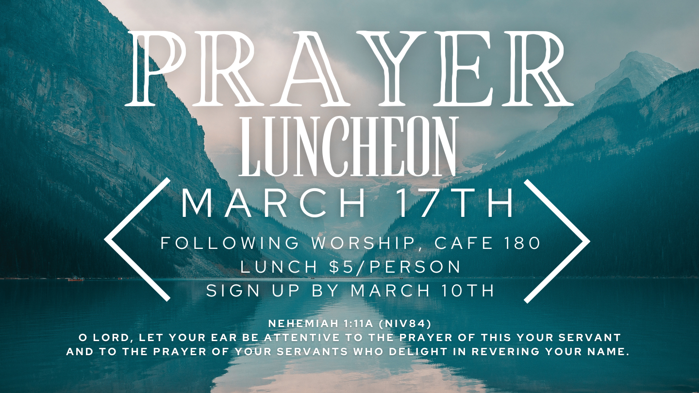 We are looking forward to our first Prayer Luncheon of 2024 on March 17th in Café 180. Here are few details and information about how to sign up: Schedule: Lunch 11:45 AM - 12:15 PM; Prayer Time 12:15 - 1:00 PM 2 Prayer Venues: Pray in Café 180 & Prayer Walking the campus Boxed lunch ($5/person) from Jason's […]