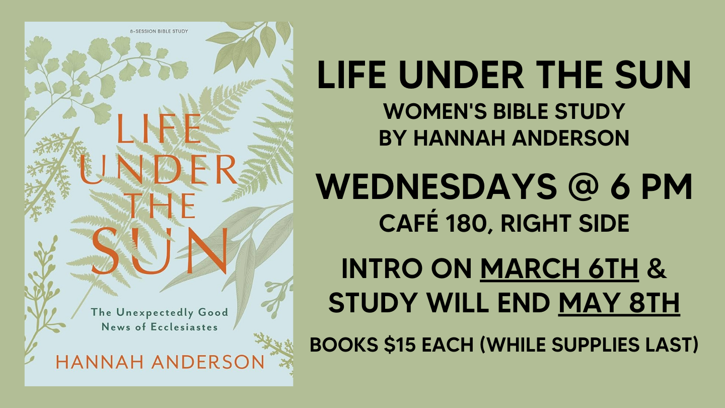 The Women's Wednesday Bible Study Class will finish the Sermon on the Mount Study Wednesday, March 6th and introduce the new study - Life Under the Sun by Hannah Anderson. This study will continue until May 8th. Books are $15 and can be purchased online at this LINK or in class on Wednesday. Hope you will […]