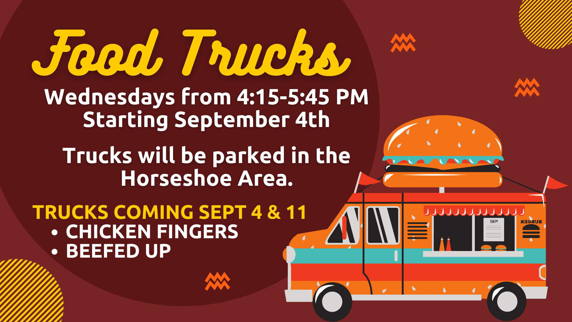 COMING SOON! Beginning September 4th, we will have a couple food trucks parked in the Horseshoe Area for you to pick up your dinner before heading to Discipleship/Bible Studies. The trucks will be ready to serve you from 4:15-5:45 PM! We will also have B105 down from the gym setup with tables and chairs for […]