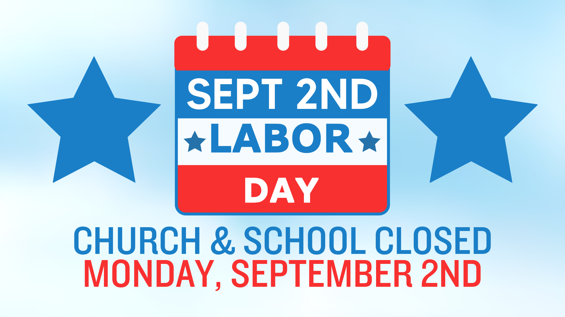 The church and school will be closed on Monday, September 2nd in observance of Labor Day.